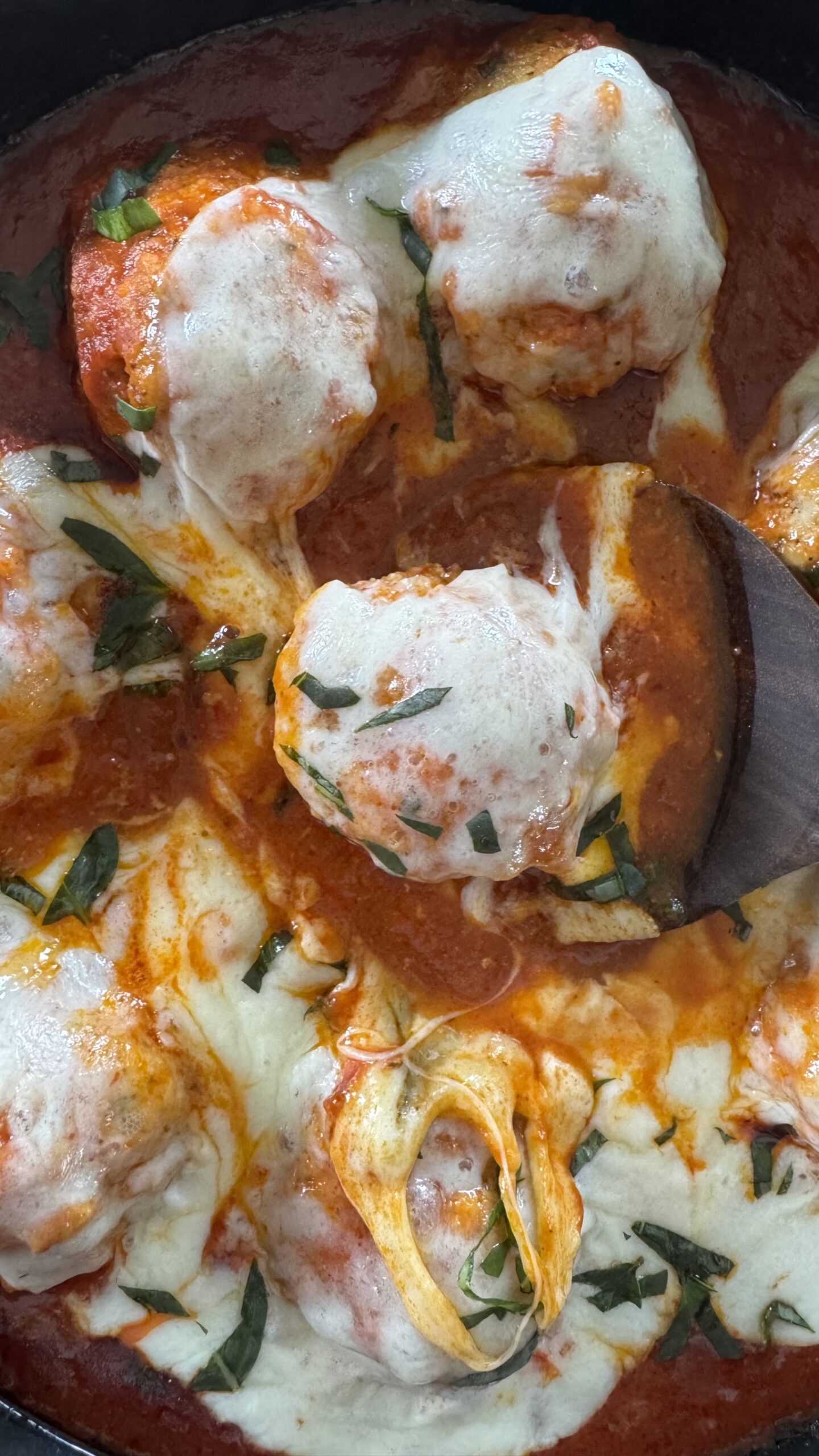 I’ve shared my love for chicken Parmesan with y’all before and thought it would be fun to turn this beloved dish into meatballs! Serve it up with your favorite pasta and a side salad or turn it into a sub sandwich!