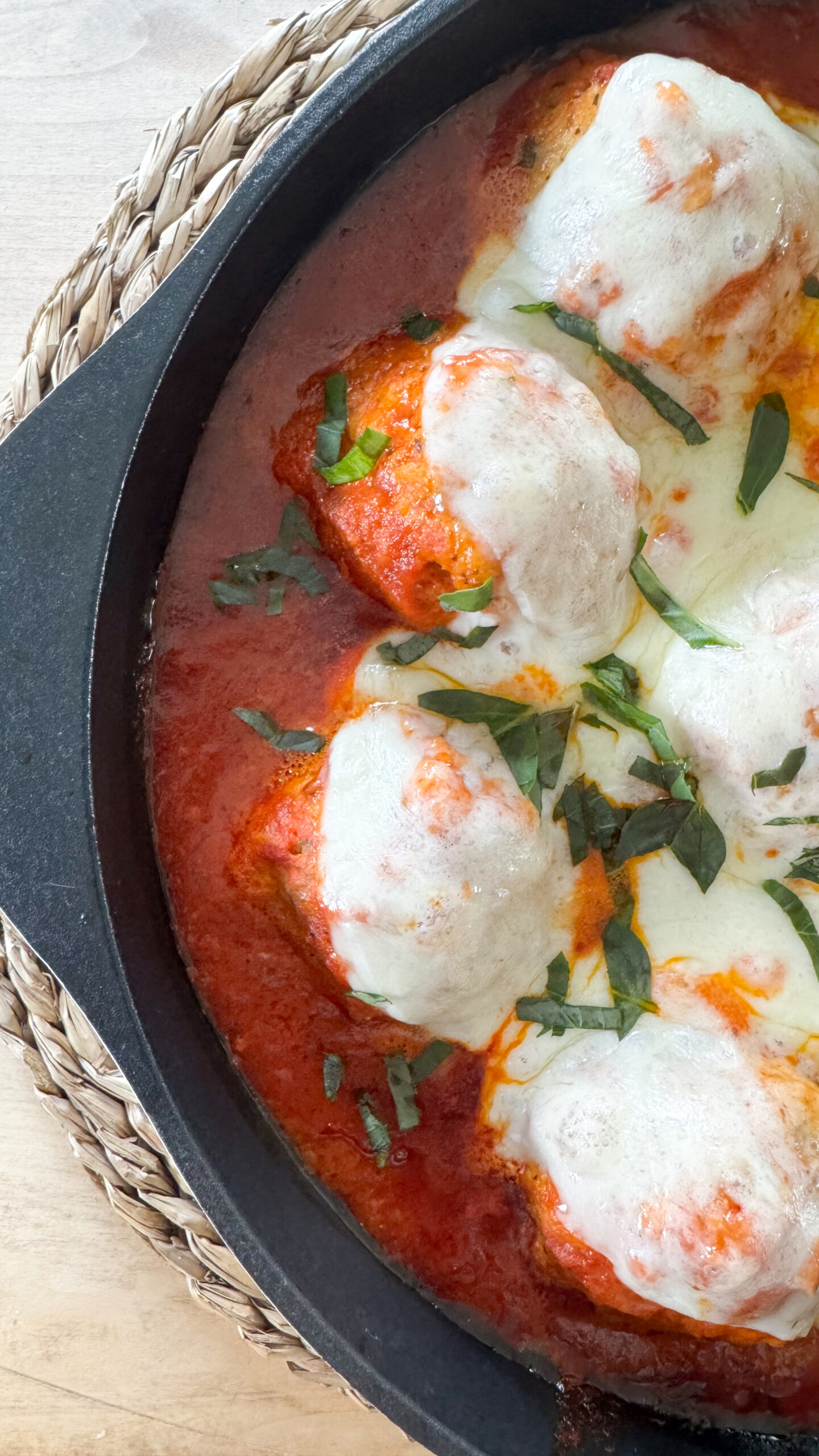 I’ve shared my love for chicken Parmesan with y’all before and thought it would be fun to turn this beloved dish into meatballs! Serve it up with your favorite pasta and a side salad or turn it into a sub sandwich!