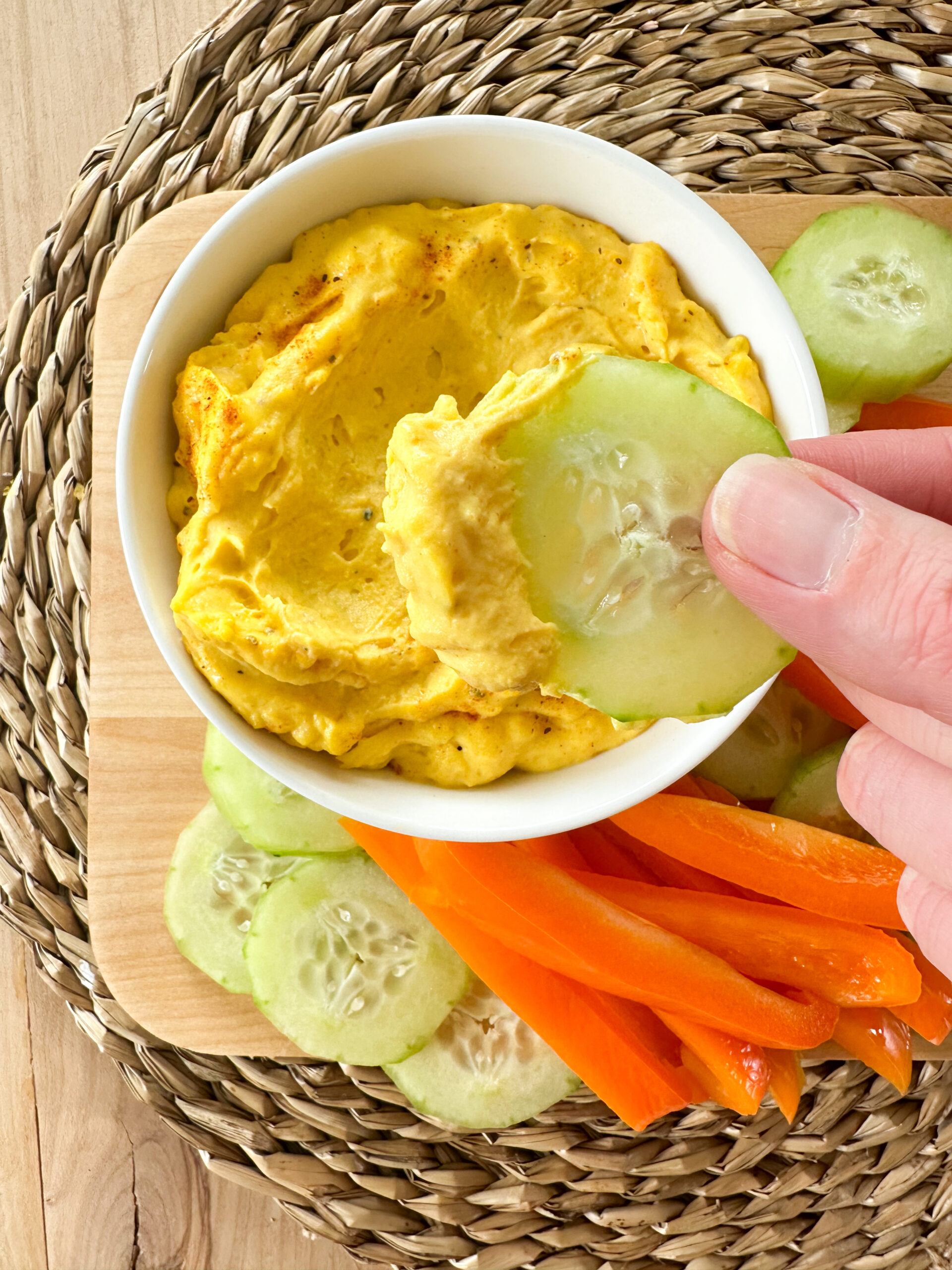We love deviled eggs in this house! I sometimes just like the filling if i’m being honest and making this dip is so great and pairs well with a veggie platter! This is a quick dip to make, lets get started!