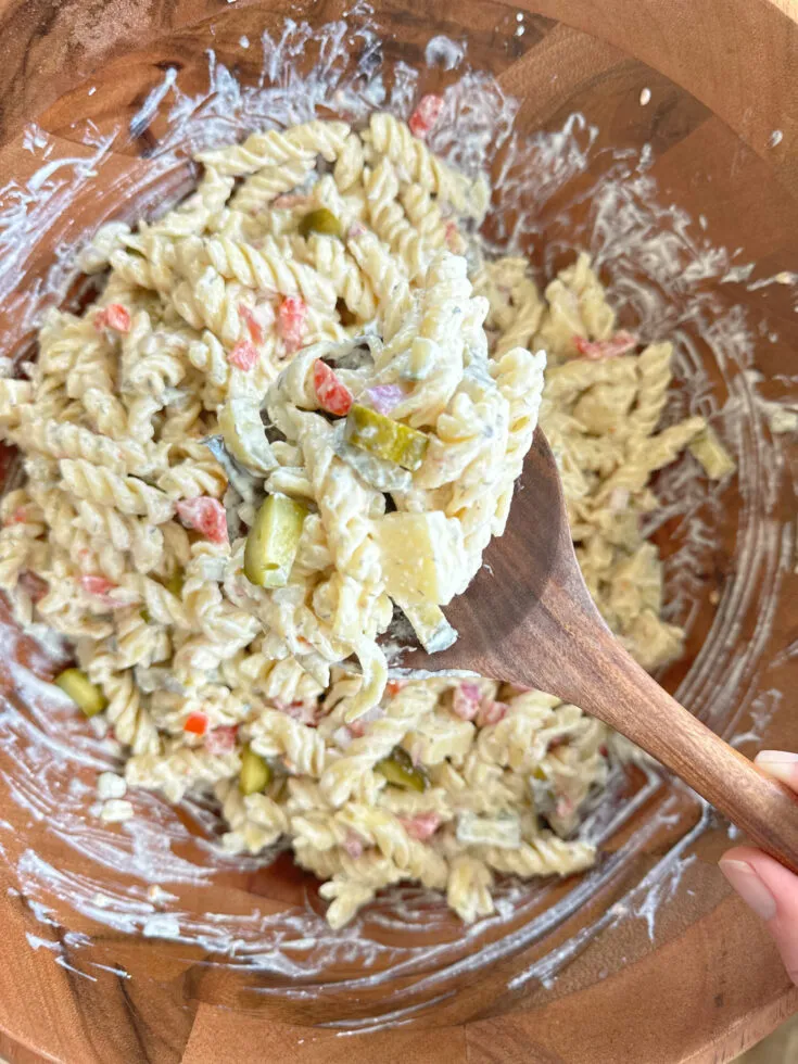 We had Tucker’s birthday party a few days ago and did a little bbq with friends and family. I kept the menu simple with burgers and hot dogs and added the pickle pasta salad as a side dish and it didn’t disappoint. The key is making homemade ranch dressing, I’ll never go back to a bottle!