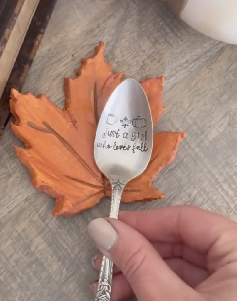 Lay your clay leaf inside a large spoon (or over the back of one) to give it a soft, curved bowl effect. This step adds dimension while still keeping it functional as a small dish.