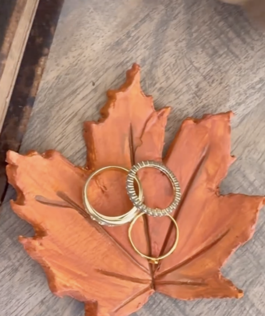 Your maple leaf bowl is ready to use! Place it on your nightstand to hold jewelry, on your entryway table for keys, or simply display it as a charming piece of handmade autumn décor.