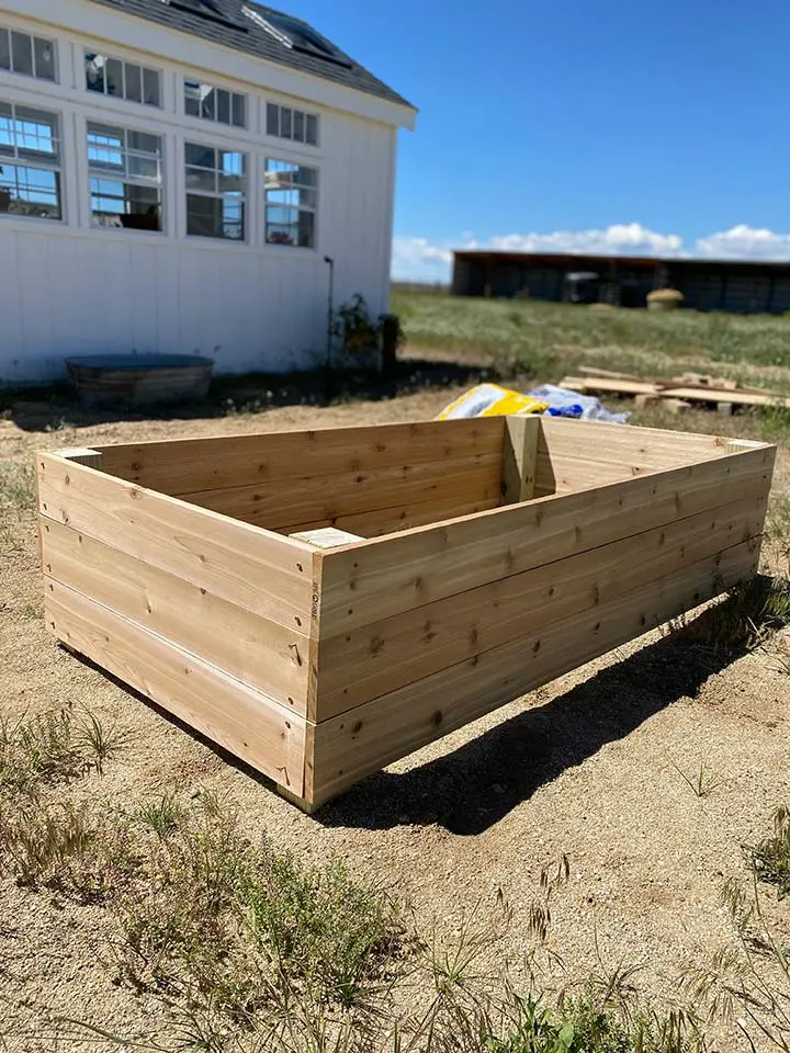 You will see the 4×4 is extended past the boards at the bottom, this is to allow you to set the bed where you want and the “feet” will stay in place.