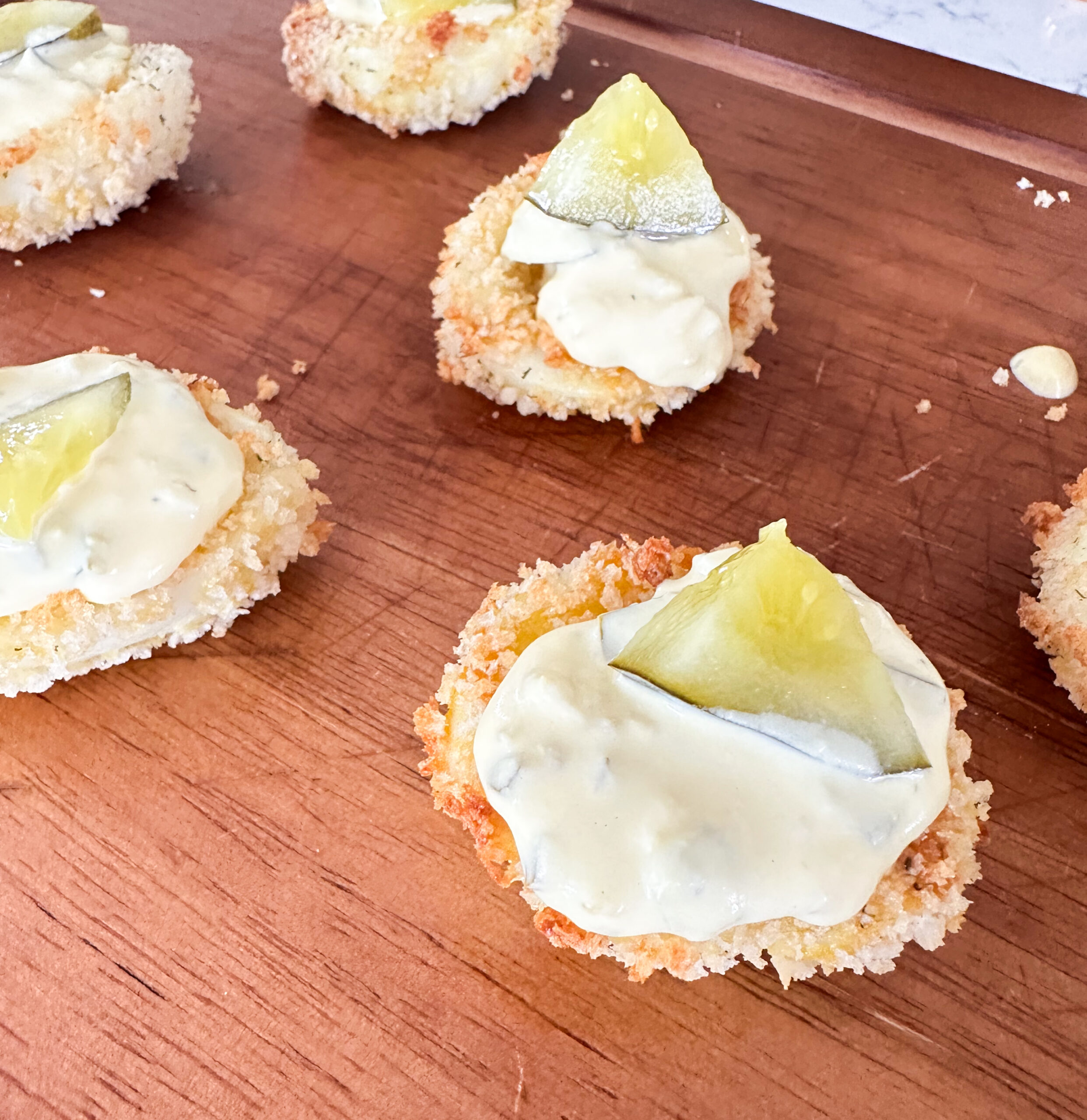 This is my new favorite way to make deviled eggs… fried! Actually I baked them but they came out so crispy and absolute perfection! These are perfect for your next gathering!