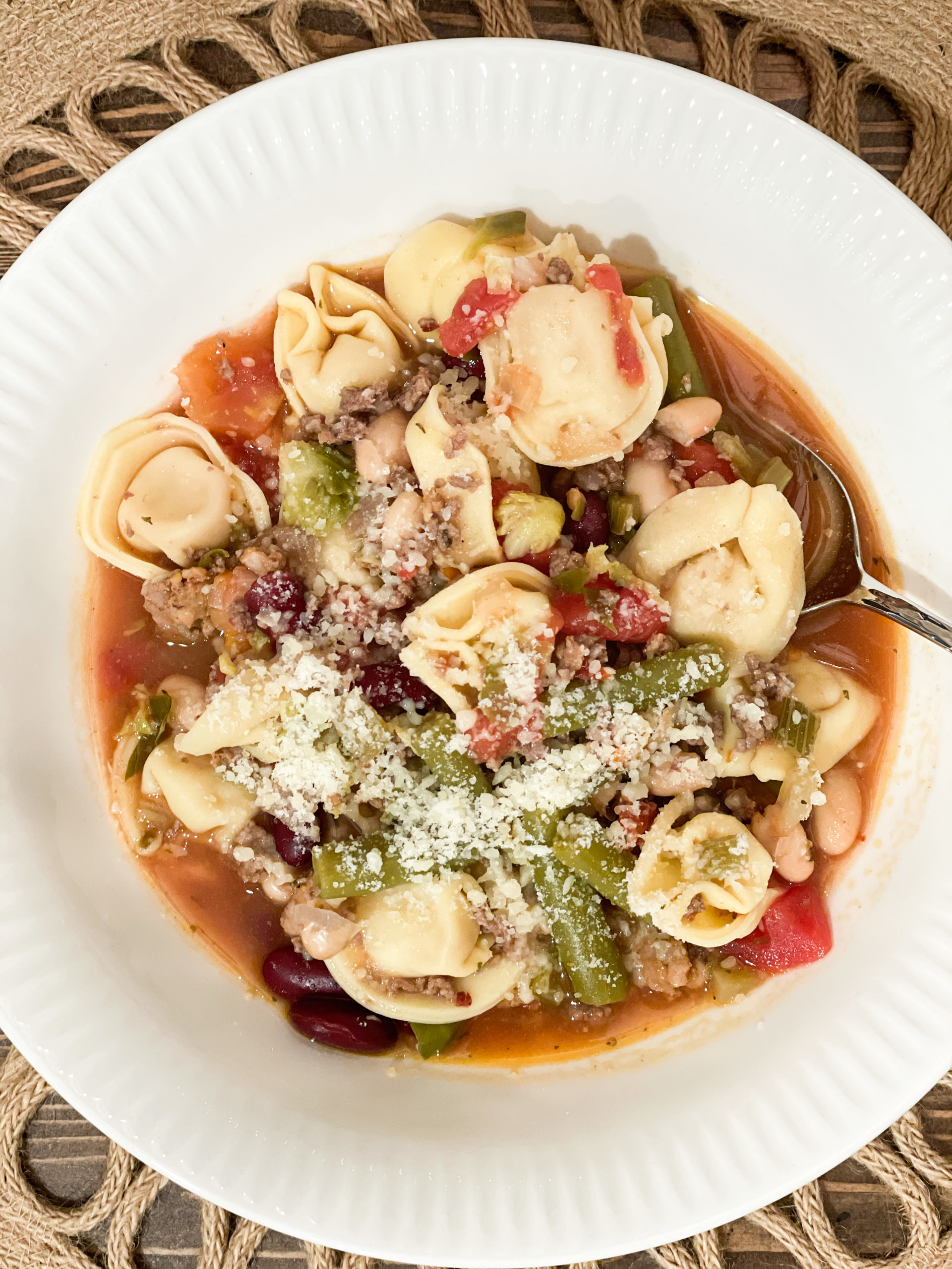 Has the cold winter got you hibernating yet? Well warm up with this hearty tortellini soup that is perfect for a cold evening! Serve it up with some Parmesan cheese and crusty buttered rolls for the perfect meal!