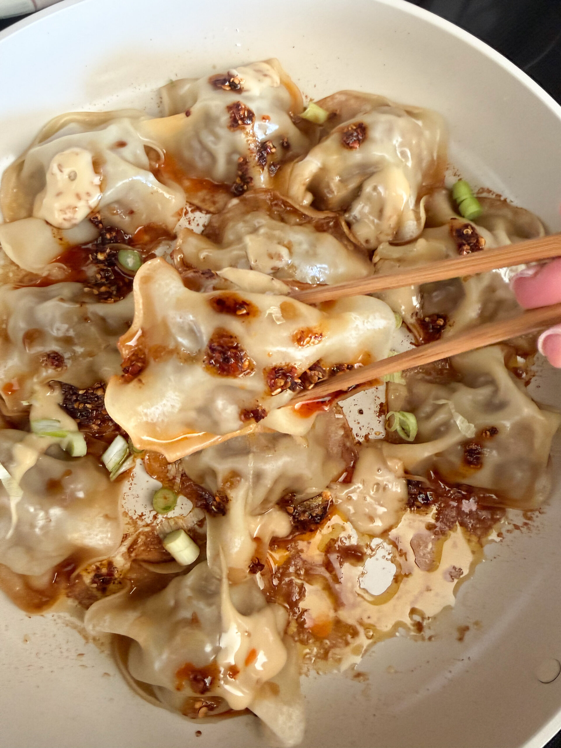 A simple mixture of soy sauce, rice vinegar, chili oil, and a touch of sugar makes a perfect homemade dumpling dipping sauce.