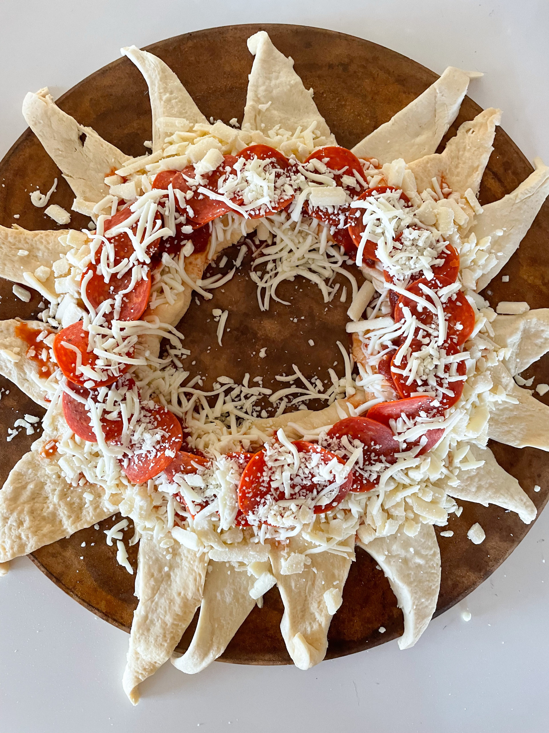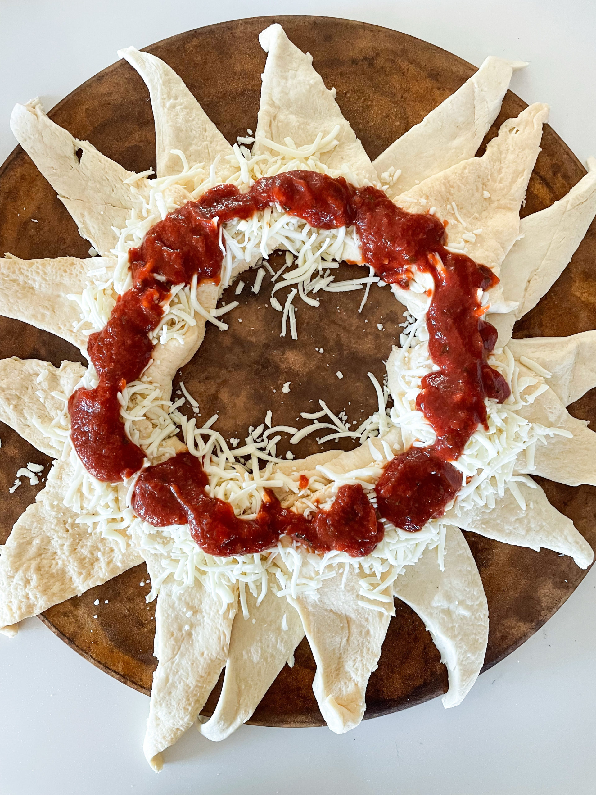 1. Separate the crescent dough into its individual sections and lay in a circle with the long pointy end to the outside.