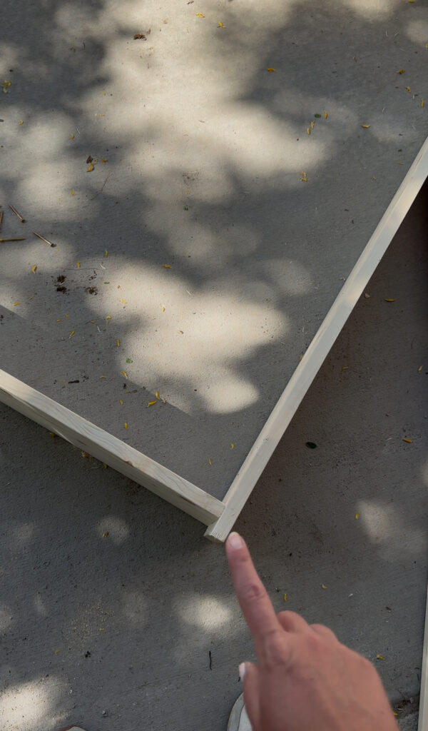 Start by assembling the base of the sandbox. Attach the short sides (46") between the long sides (47 1/2") to create a square frame. You can use pocket holes for a clean look or pre-drill and screw through the long sides using 1 1/4" screws. Make sure everything is square and level.
